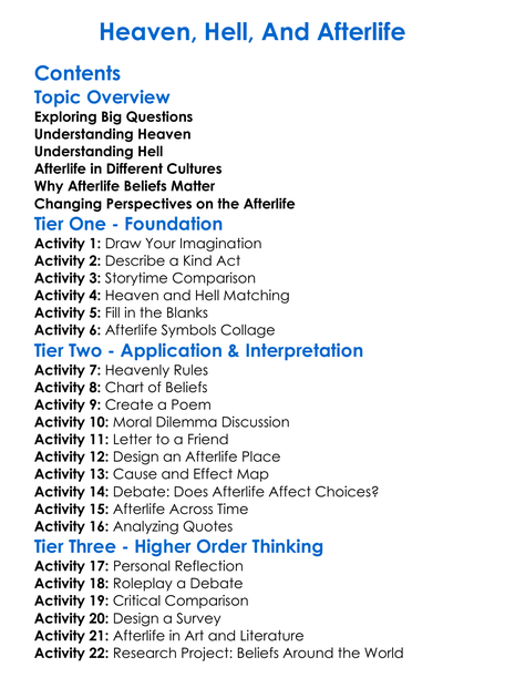 Heaven Hell And Afterlife Worksheet Activity Booklet