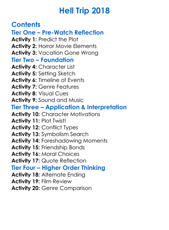 Hell Trip 2018 Worksheet Activity Booklet