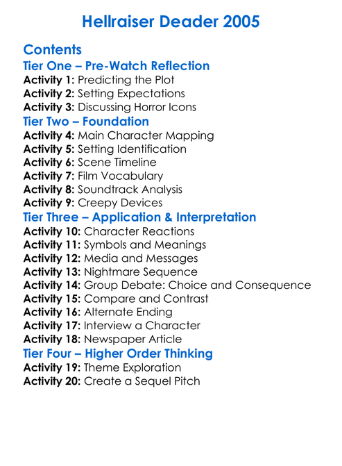 Hellraiser Deader 2005 Worksheet Activity Booklet