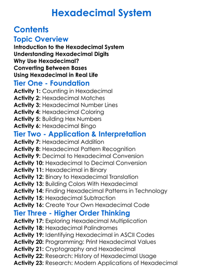 Hexadecimal System Worksheet Activity Booklet