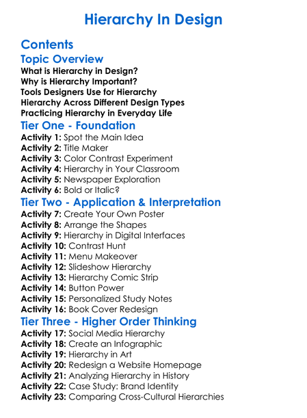 Hierarchy In Design Worksheet Activity Booklet