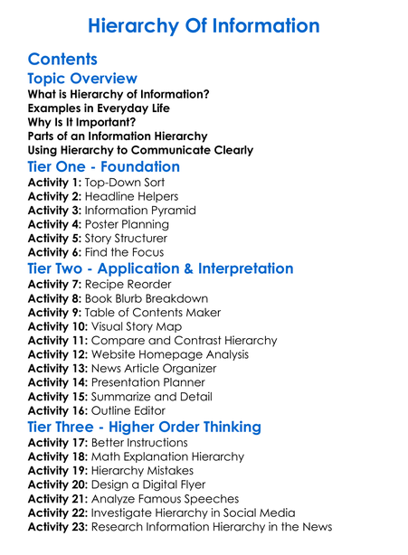 Hierarchy Of Information Worksheet Activity Booklet