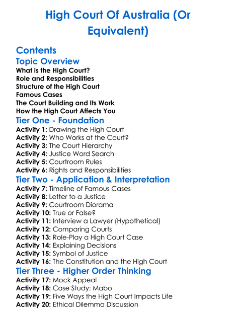 High Court Of Australia Or Equivalent Worksheet Activity Booklet
