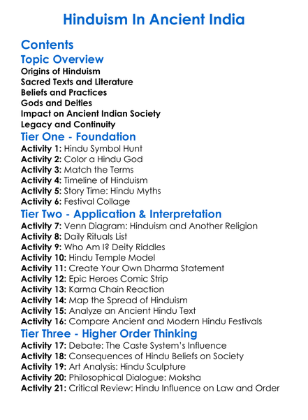 Hinduism In Ancient India Worksheet Activity Booklet