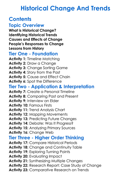 Historical Change And Trends Worksheet Activity Booklet