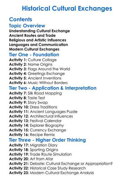 Historical Cultural Exchanges Worksheet Activity Booklet