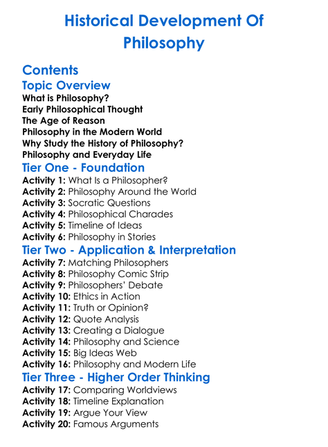 Historical Development Of Philosophy Worksheet Activity Booklet