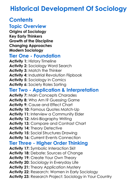 Historical Development Of Sociology Worksheet Activity Booklet