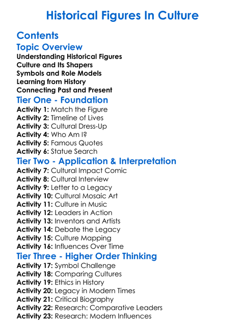 Historical Figures In Culture Worksheet Activity Booklet