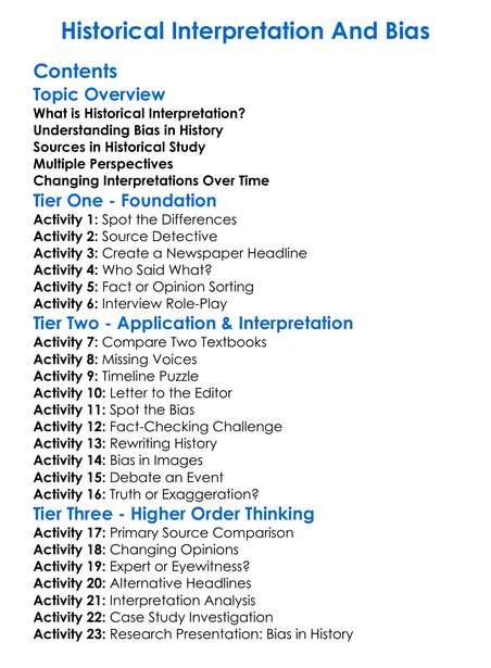 Historical Interpretation And Bias Worksheet Activity Booklet