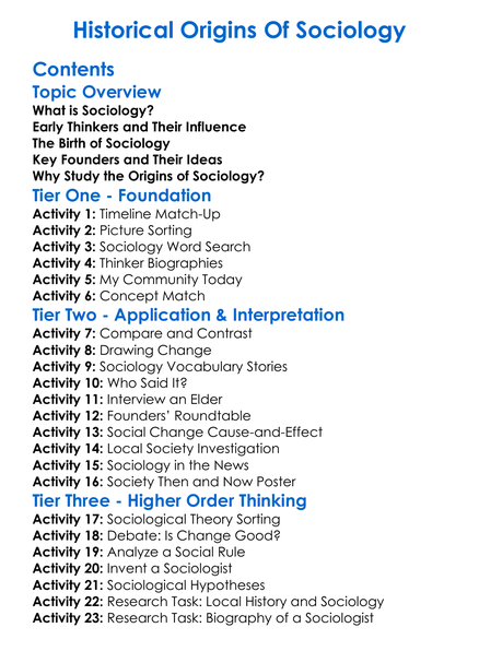 Historical Origins Of Sociology Worksheet Activity Booklet