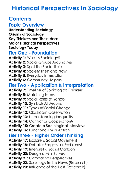 Historical Perspectives In Sociology Worksheet Activity Booklet