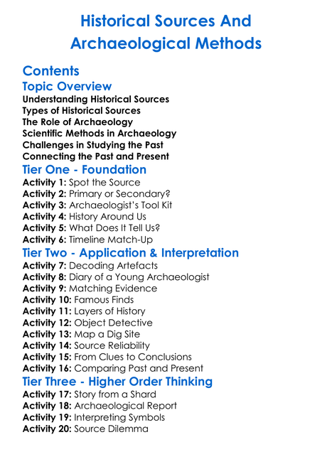 Historical Sources And Archaeological Methods Worksheet Activity Booklet