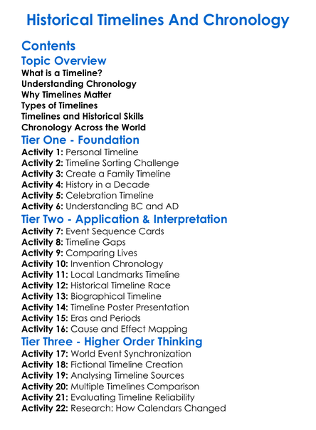 Historical Timelines And Chronology Worksheet Activity Booklet