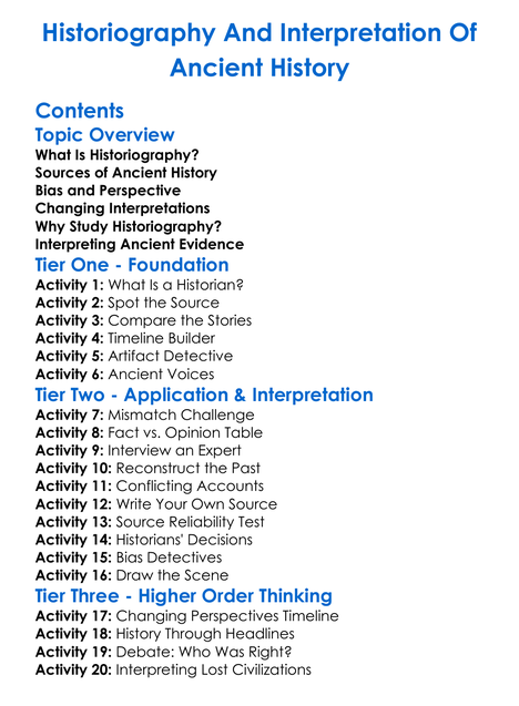 Historiography And Interpretation Of Ancient History Worksheet Activity Booklet