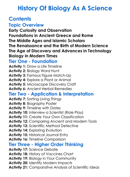 History Of Biology As A Science Worksheet Activity Booklet