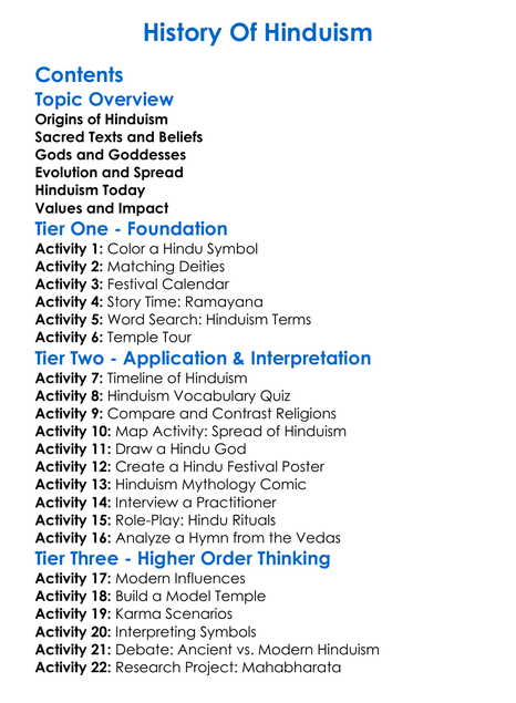 History Of Hinduism Worksheet Activity Booklet