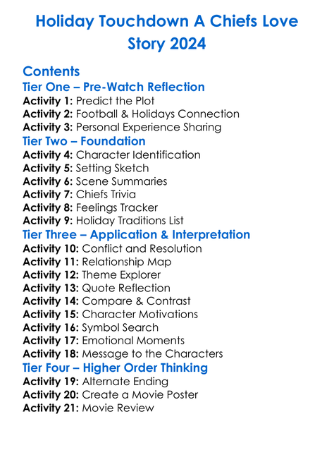 Holiday Touchdown A Chiefs Love Story 2024 Worksheet Activity Booklet