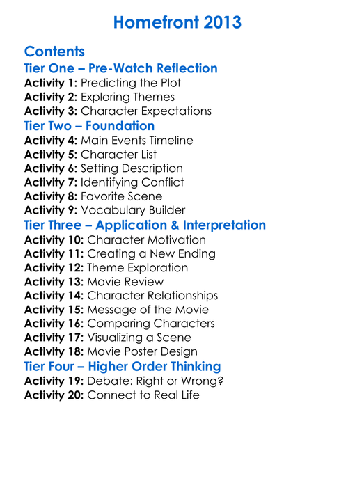 Homefront 2013 Worksheet Activity Booklet