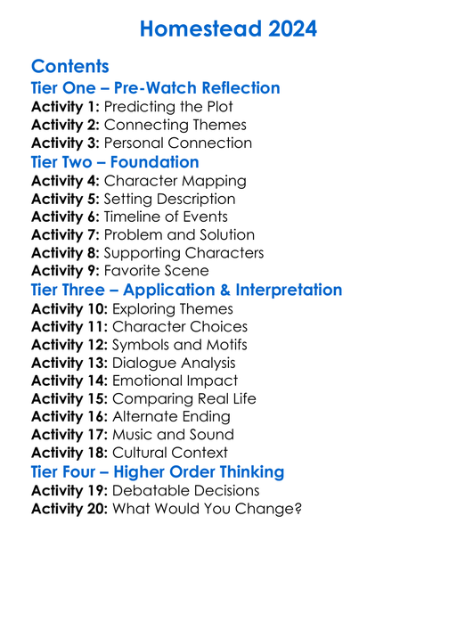 Homestead 2024 Worksheet Activity Booklet