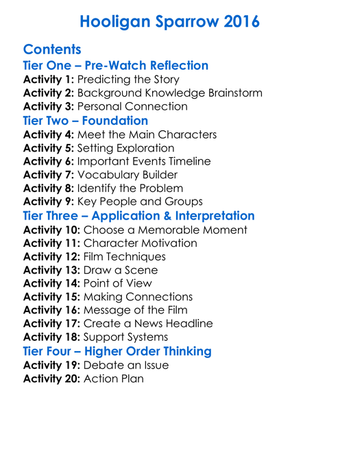 Hooligan Sparrow 2016 Worksheet Activity Booklet