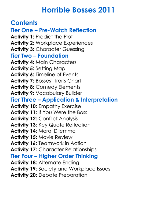 Horrible Bosses 2011 Worksheet Activity Booklet