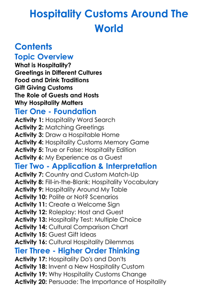 Hospitality Customs Around The World Worksheet Activity Booklet
