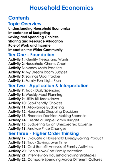 Household Economics Worksheet Activity Booklet