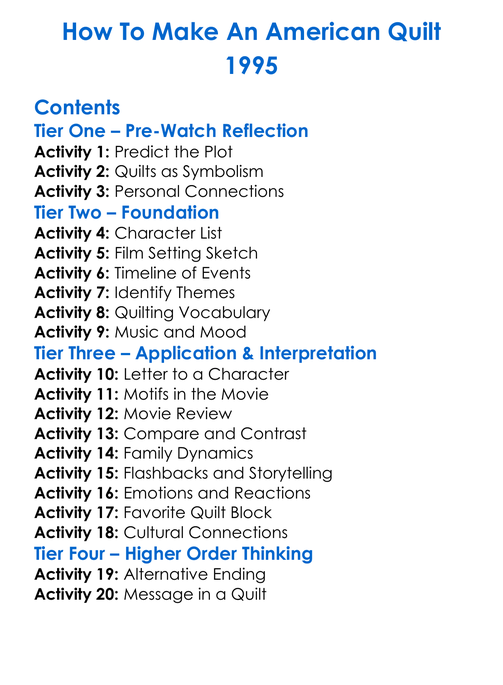 How To Make An American Quilt 1995 Worksheet Activity Booklet