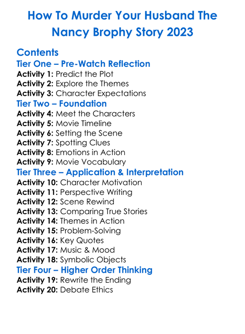How To Murder Your Husband The Nancy Brophy Story 2023 Worksheet Activity Booklet
