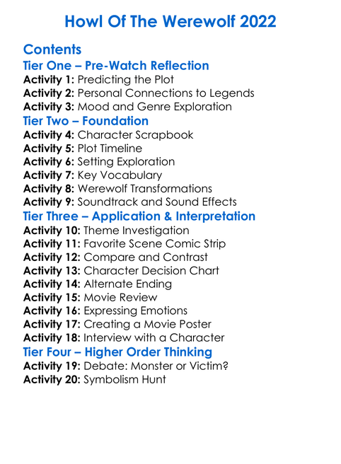 Howl Of The Werewolf 2022 Worksheet Activity Booklet
