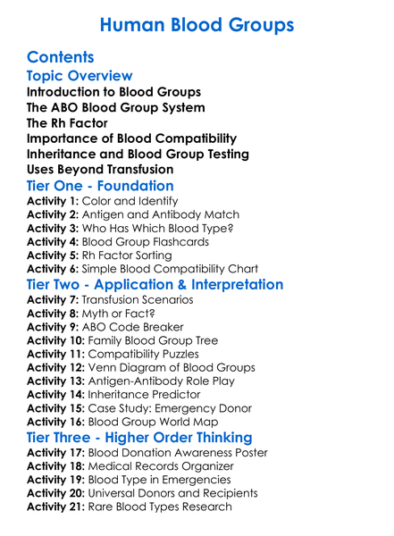 Human Blood Groups Worksheet Activity Booklet