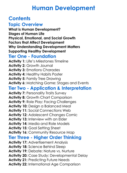 Human Development Worksheet Activity Booklet