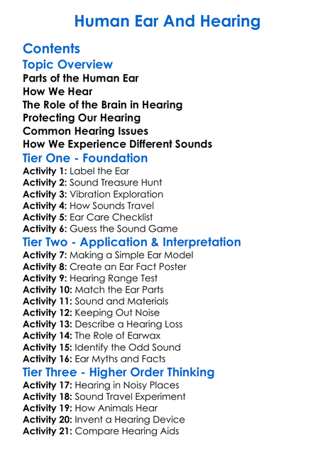 Human Ear And Hearing Worksheet Activity Booklet