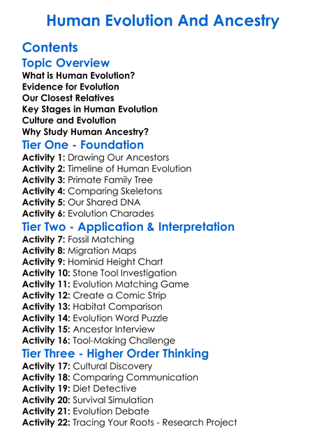 Human Evolution And Ancestry Worksheet Activity Booklet