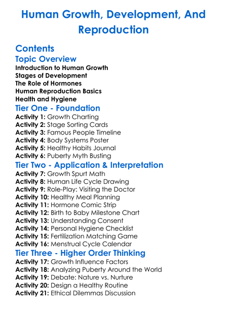 Human Growth Development And Reproduction Worksheet Activity Booklet