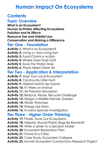 Human Impact On Ecosystems Worksheet Activity Booklet