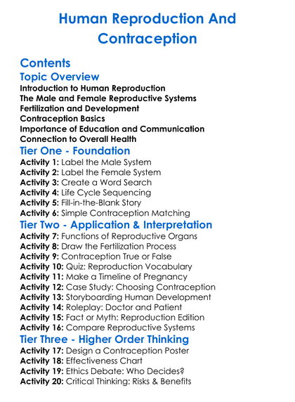 Human Reproduction And Contraception Worksheet Activity Booklet