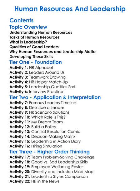 Human Resources And Leadership Worksheet Activity Booklet