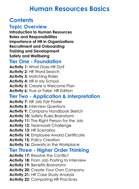 Human Resources Basics Worksheet Activity Booklet
