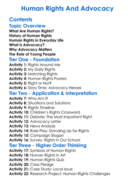 Human Rights And Advocacy Worksheet Activity Booklet