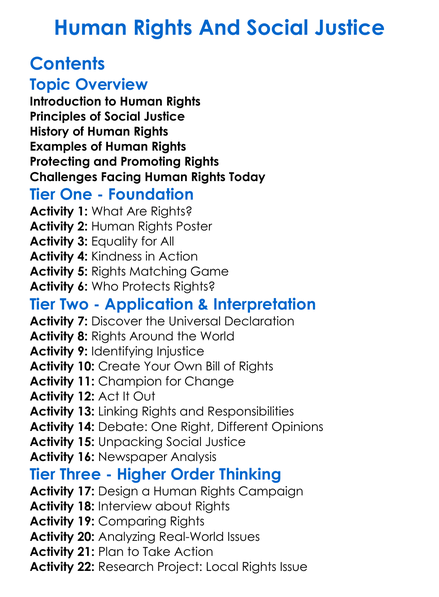 Human Rights And Social Justice Worksheet Activity Booklet