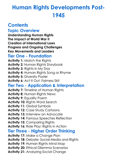 Human Rights Developments Post-1945 Worksheet Activity Booklet