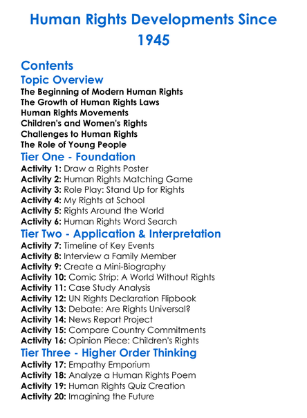 Human Rights Developments Since 1945 Worksheet Activity Booklet