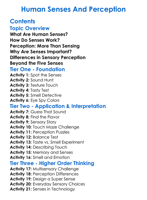 Human Senses And Perception Worksheet Activity Booklet