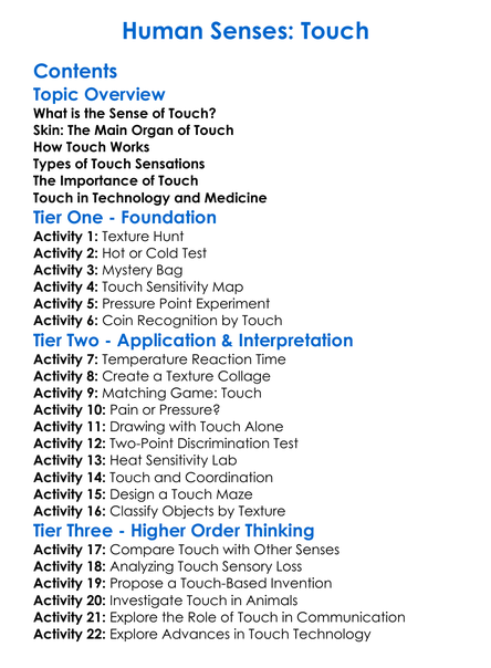 Human Senses Touch Worksheet Activity Booklet