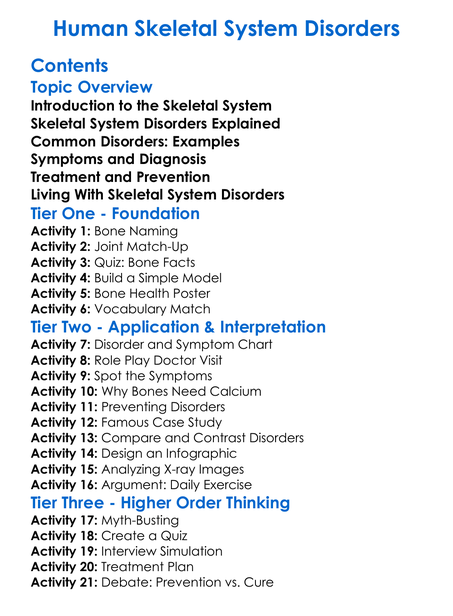 Human Skeletal System Disorders Worksheet Activity Booklet