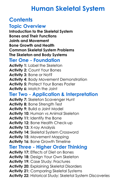 Human Skeletal System Worksheet Activity Booklet