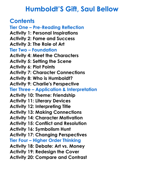 Humboldts Gift Saul Bellow Worksheet Activity Booklet