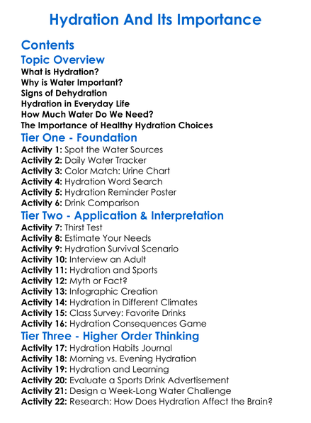 Hydration And Its Importance Worksheet Activity Booklet
